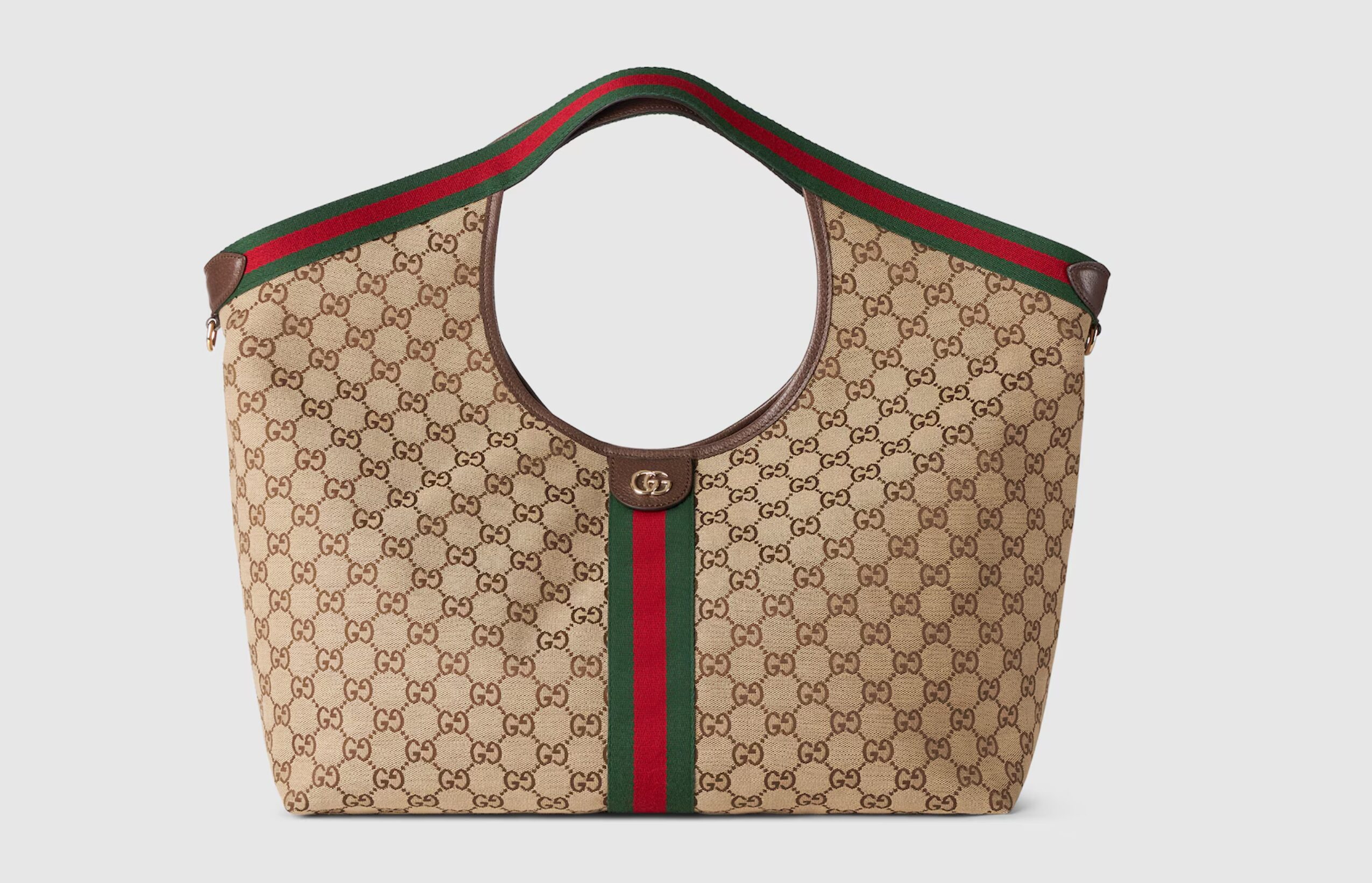 What makes the Giglio interesting is that it is unmistakably Gucci without feeling overworked. The design leans into the House’s most recognizable visual language: an all-over interlocking GG monogram, red-and-green web accents, and a silhouette that feels tied to Gucci’s equestrian and luggage history. But instead of making the piece feel archival or costume-like, the bag comes across soft, oversized, functional, and relevant to how women actually dress now. Gucci’s own product language positions it as a versatile, tote-inspired design meant for everyday style. :contentReference[oaicite:2]{index=2}